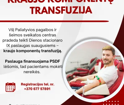 Naujos paslaugos mūsų centre – kraujo komponentų transfuzija! Mieli pacientai, Džiaugiamės galėdami pranešti, kad VšĮ Paliatyvios pagalbos ir šeimos sveikatos...